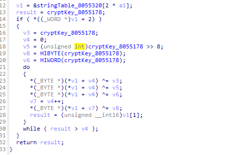 所有字符串都使用四轮 XOR 解密进行解密。使用的解密密钥如下: