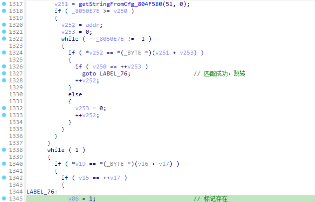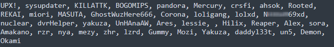 其中样本检查受感染主机上正在运行的进程名称。如果进程名称属于其他僵尸网络恶意软件家族和其他 Mirai 变体则结束被检查的进程。