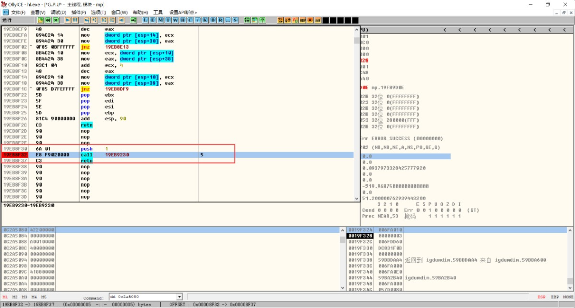 上边两点其实试一下就能有结果了,这里直接放结果。第5层就是触发攻击逻辑(nop call后无法触发攻击),对其进行下断点。