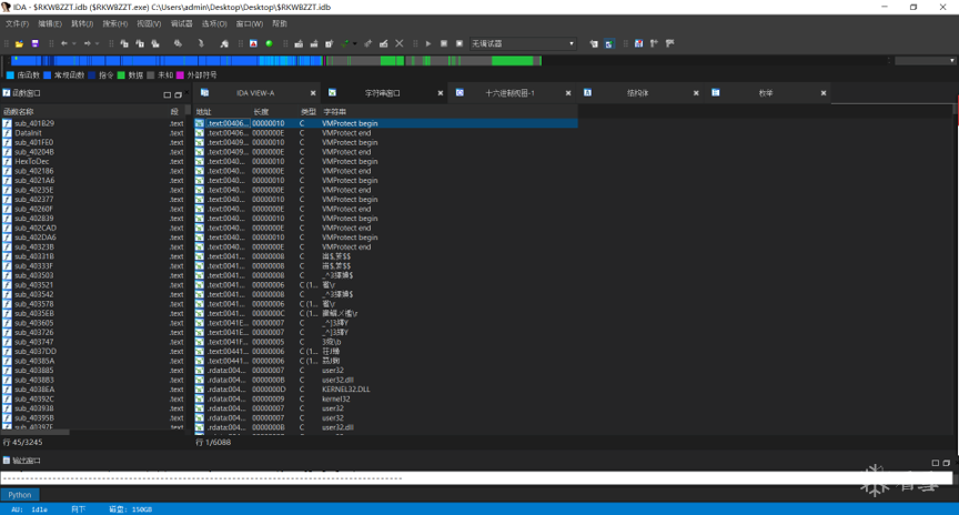 此时我们可以看到字符串中有VMP保护壳的相关字符串,既然前面查壳的时候是无壳,那么这个保护壳,我估计是给驱动文件加的,并不影响我们的分析。我们看看其他内容。