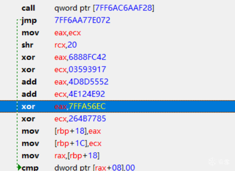 发现还是来到这个地方,那么我们就已经分析出两个函数了。现在我们返回对控制变量的交叉引用,我们这次看cmp的那个语句。