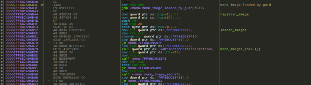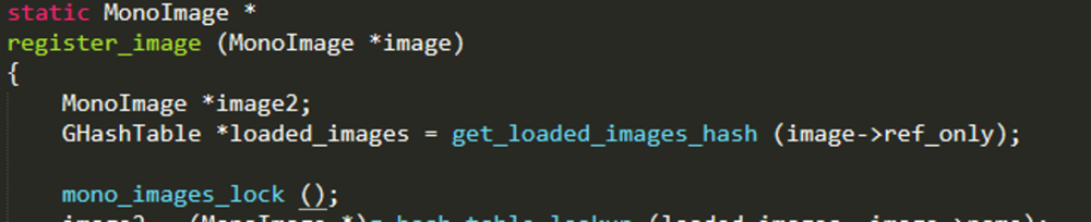 我们应该如何去找到这个loaded_images?没办法,上分析。调试器打开游戏跳到mono_image_open_from_data_with_name这个函数然后对照源码进行分析。