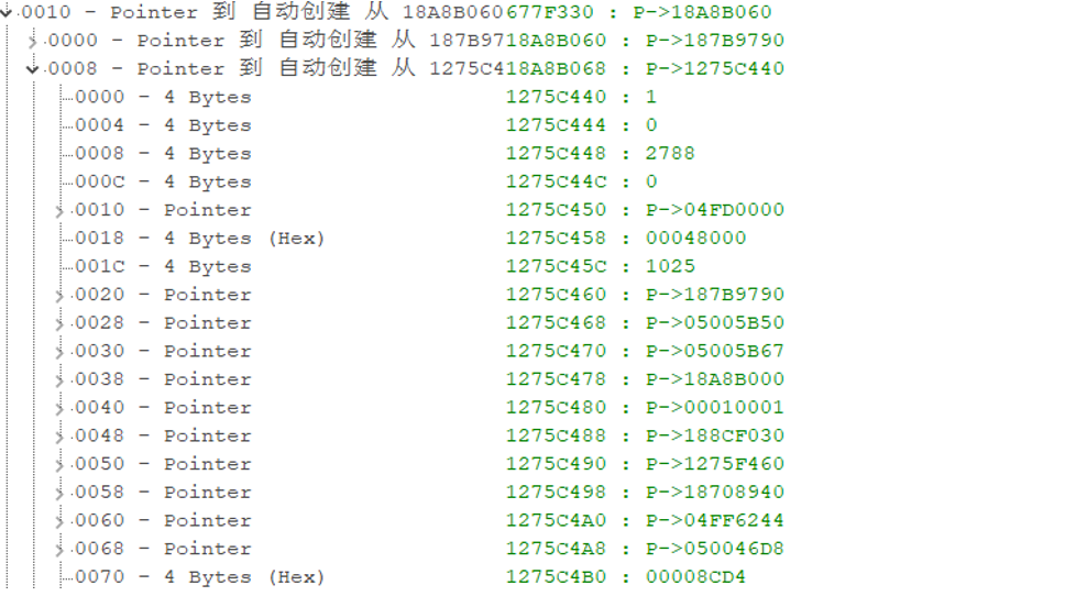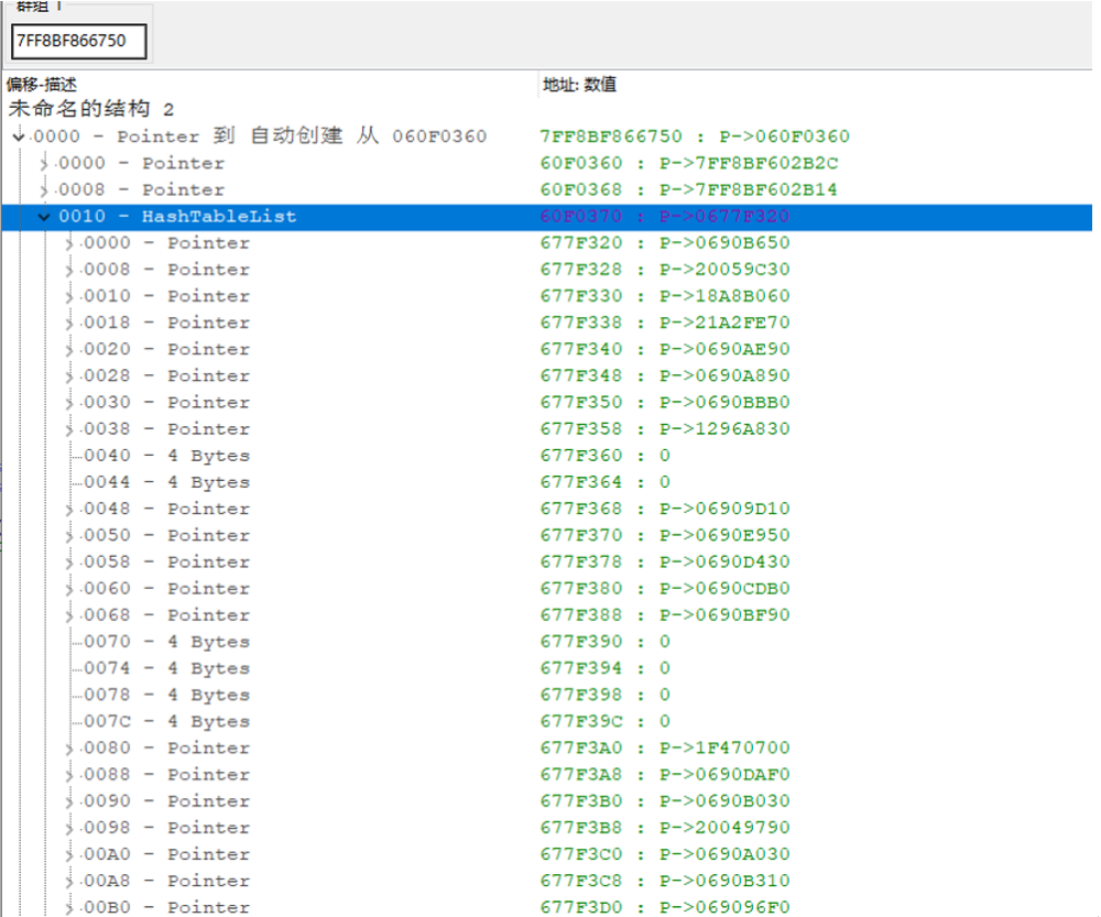 很明显,这里应该就是模块列表,我们再随便进去一个去看看。通过刚刚IDA的分析,0x0是模块名,0x8是image。