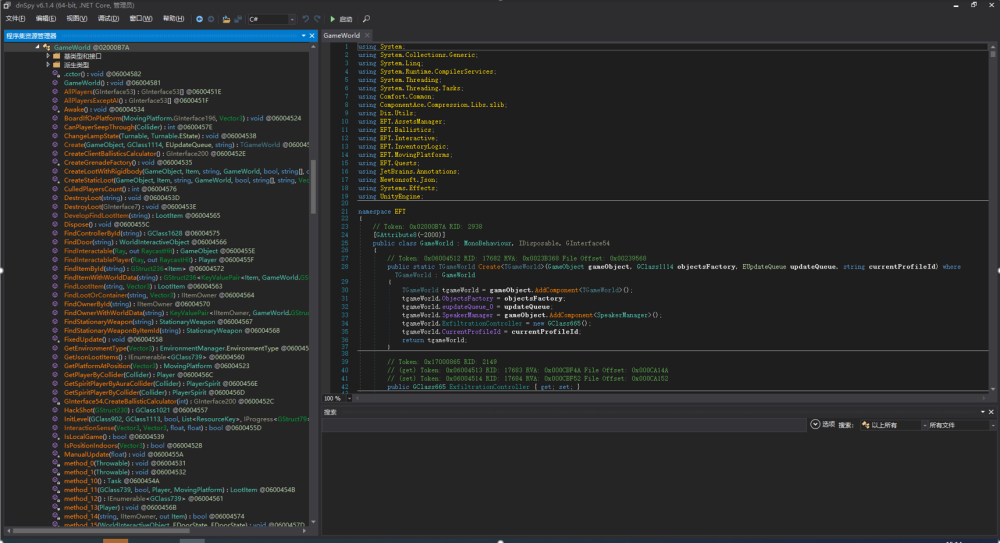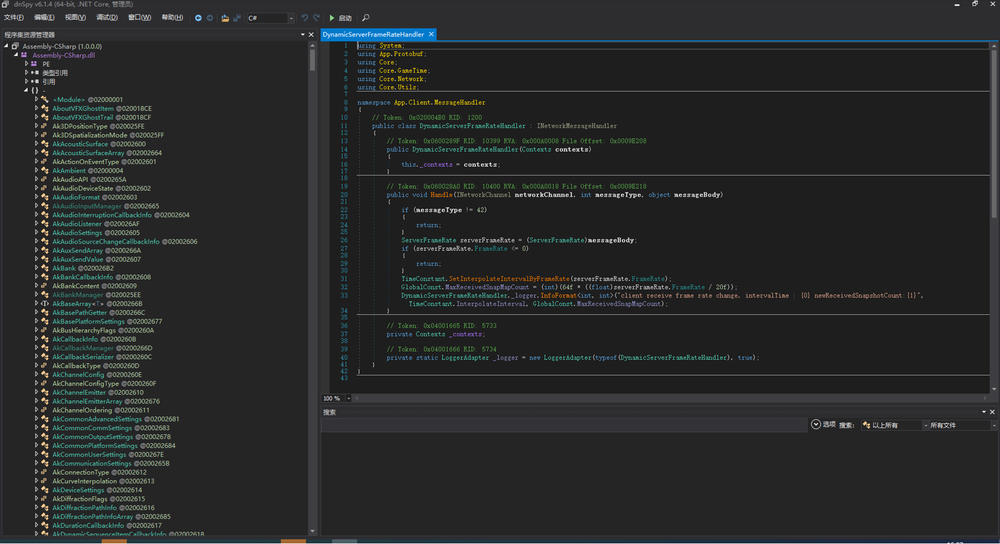 关于Mono这东西我就不啰嗦了,我就直接进入正题。众所周知,Mono的加密主要是针对 Assembly-CSharp.dll,此DLL包含了游戏的所有功能性函数,并且可以通过工具dnSpy.exe加载后进行查看。