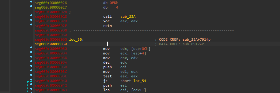 因为是从EF0000开始dump,所以拖进ida分析的时候需要修复一下头部,从28开始。