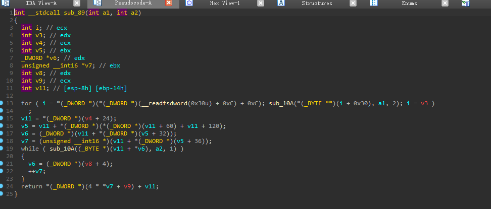 然后调用InitProcAddr获取LoadLibrary和GetProcAddress地址。InitProcAddr的实现也是从Ldr中去遍历