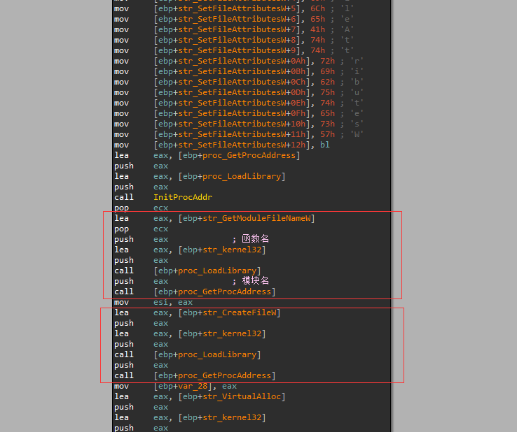 函数进来会进行字符串初始化,用于后面调用api