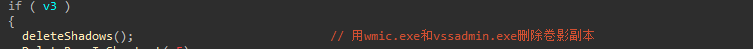 随后删除了卷影文件,防止通过该文件进行文件恢复。