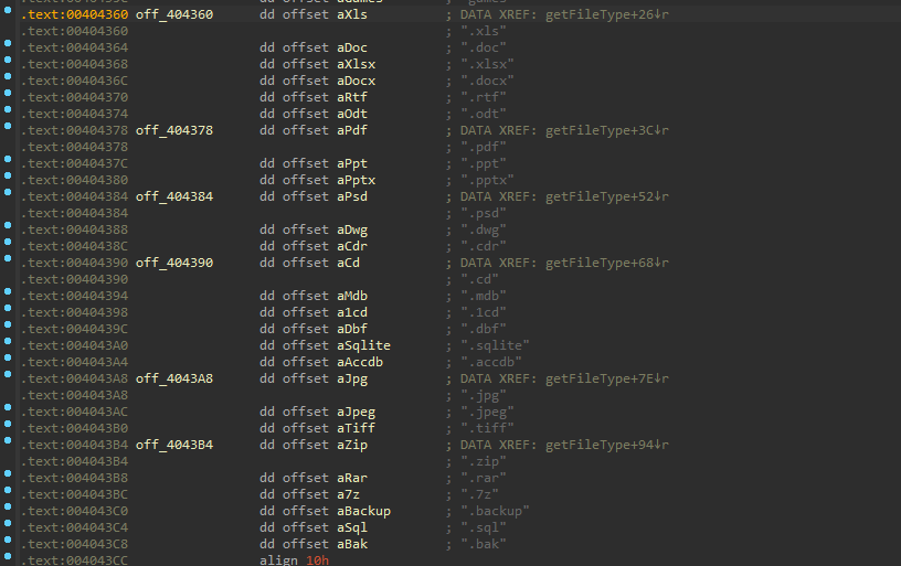 以下为该样本所要加密的文件后缀。