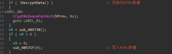 然后开始解密HTML数据,就是运行样本后弹出的那个网页。