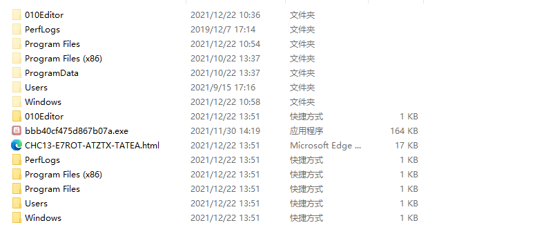 隐藏了所有的文件夹,并创建了新的文件夹,实则为快捷方式,右键属性可看到重定向。