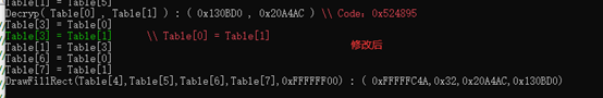 经过对比,发现黄色方块在计算Decryp之后,将Table[6]与Table[7]的值进行了互换。直接通过判断互换流程将其修改为Table[3] = Table[1]禁止互换。