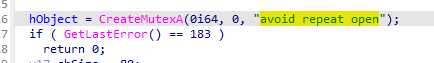 首先创建了一个名为”avoid repeat open”的互斥体,保证程序的单例执行。
