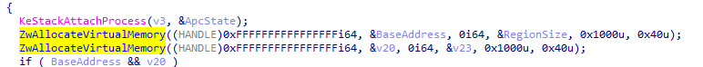 调用ZwAllocateVirtualMemory对dwm申请可执行内存。
