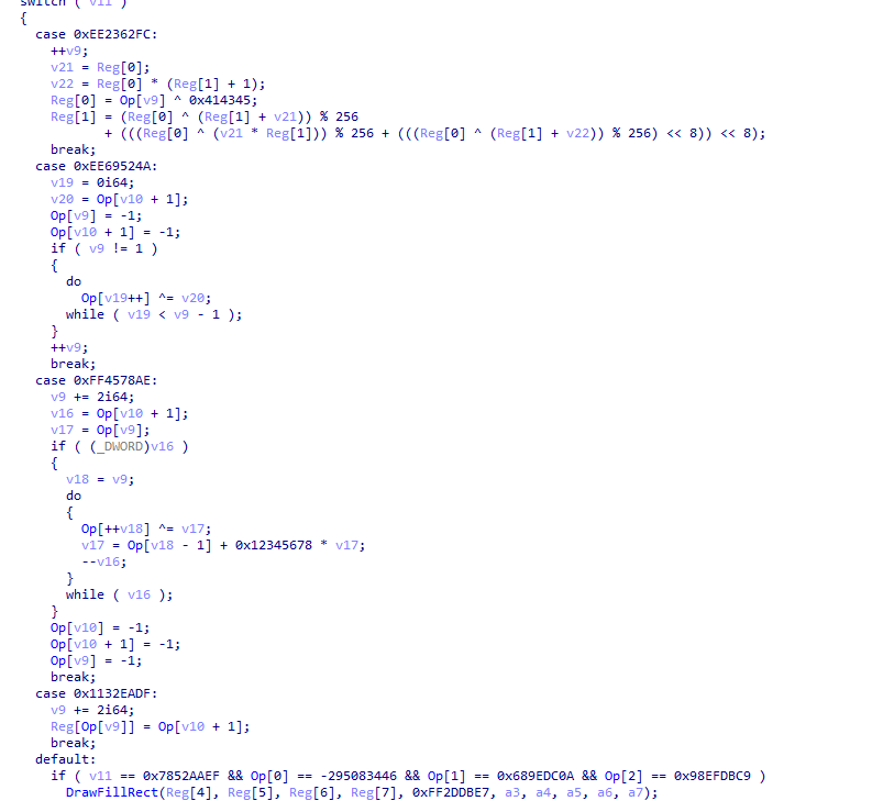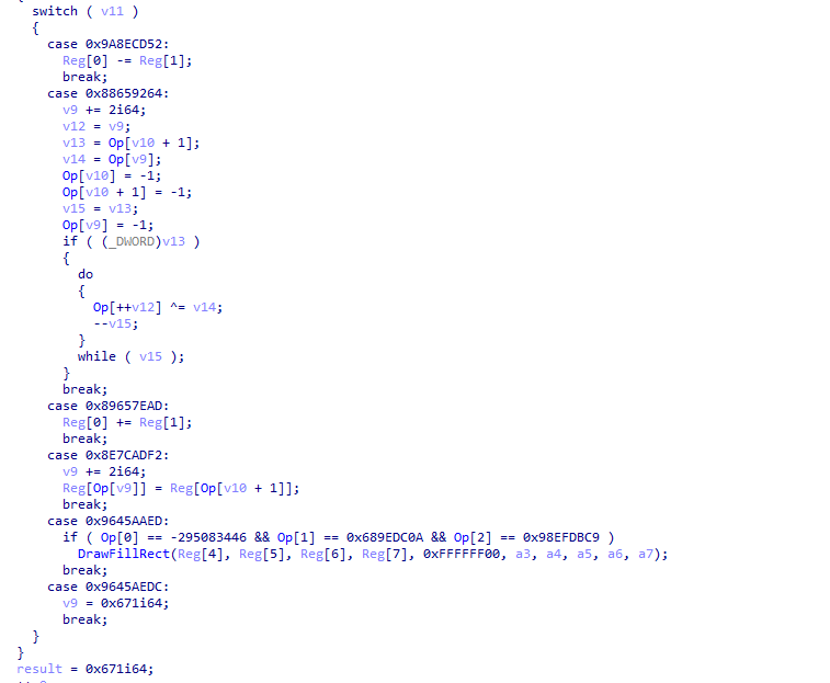 所有过程与初赛基本一致,包括绘制函数、初始化Shader、虚拟机代码,只不过虚拟机代码略有变动,因此不做详细分析。