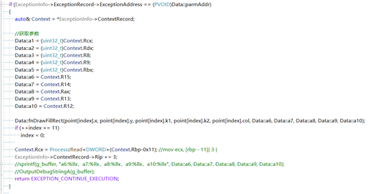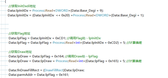 同样在HOOK头部拿到硬编码后进行跳转偏移计算拿到Draw地址,并在Draw函数执行前,用VEH进行HOOK调用。