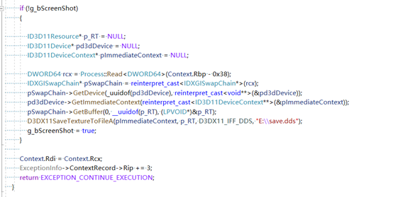 直接通过SwapChain获取 Buffer保存。运行后会在E盘生成DDS文件,用VS打开直接是图片显示。