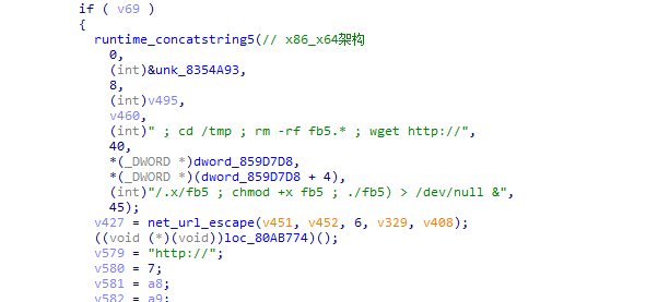 最后根据获取到的信息来选择下载恶意模块并执行。