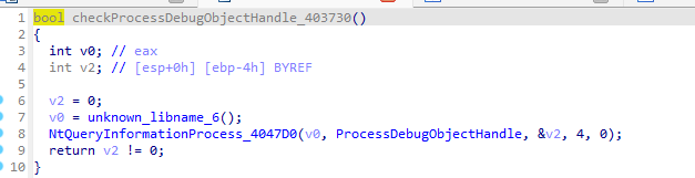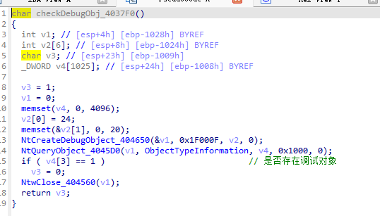 - 调试时默认会有一个调试对象,程序尝试创建一个调试对象后获取,如果获取不到则表明处于调试状态。