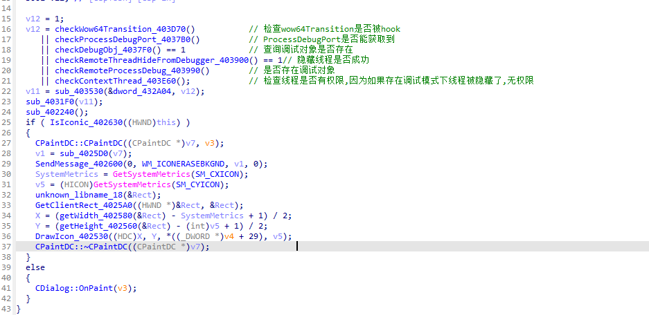 执行到MFC入口后会首先判断Wow64Transition是否被hook。