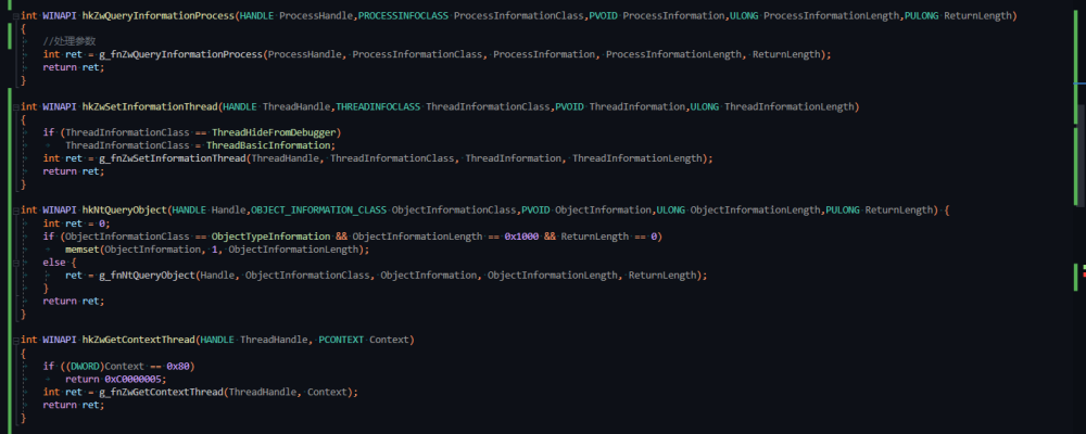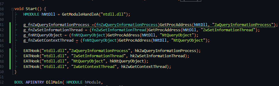 在程序启动初期,快速将ntdll.dll的导出函数进行替换后自写分发过滤。
