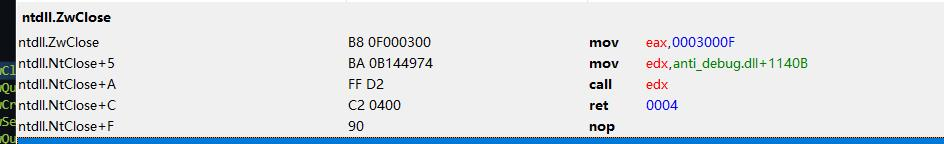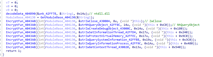除此之外,程序会通过解密自拷贝的Zw函数来进行反调试。