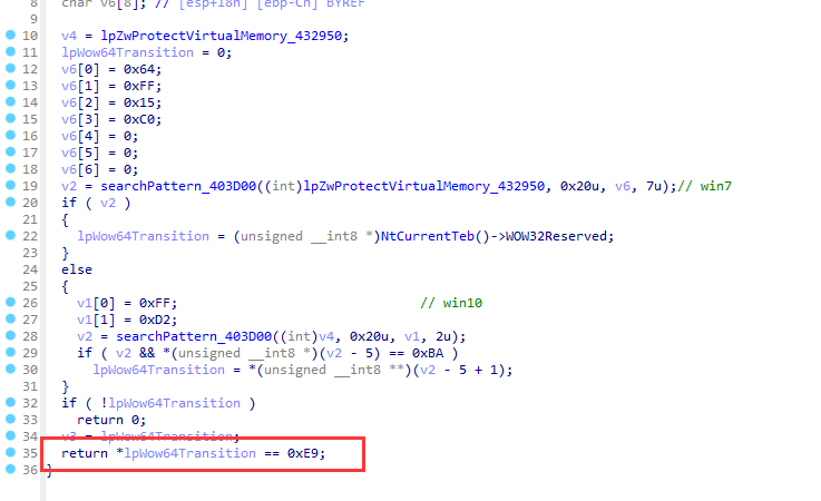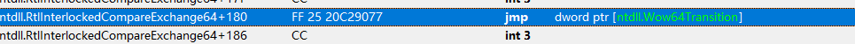 由于CM会检测wow64transition头部是否为0xE9(默认 FF 25 xxxxxxx)
