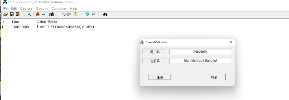 Win32获取EditBox函数大多是GetWindowText,但是在ida中交叉引用发现并没有什么有价值的东西。但是在导入表看到OutputDebugStringA,然后尝试打开了DbgView看看能不能捕获到内容。