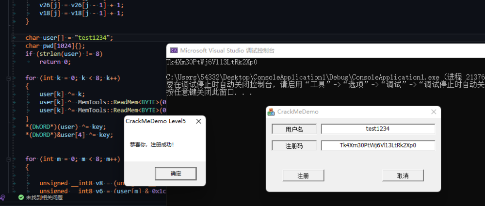 最后将用户名和上边生成的三个表、Key进行计算注册码。