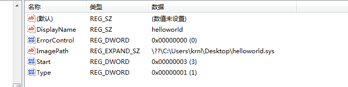 ImagePath:驱动模块的路径,\??\为全路径磁盘就是挂载这个上面