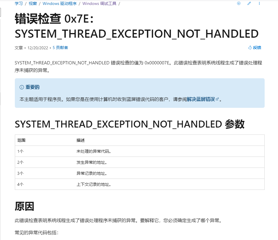 根据给出的原因到https://learn.microsoft.com/en-us/windows-hardware/drivers/debugger/搜索