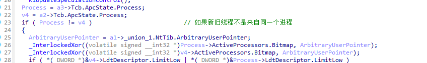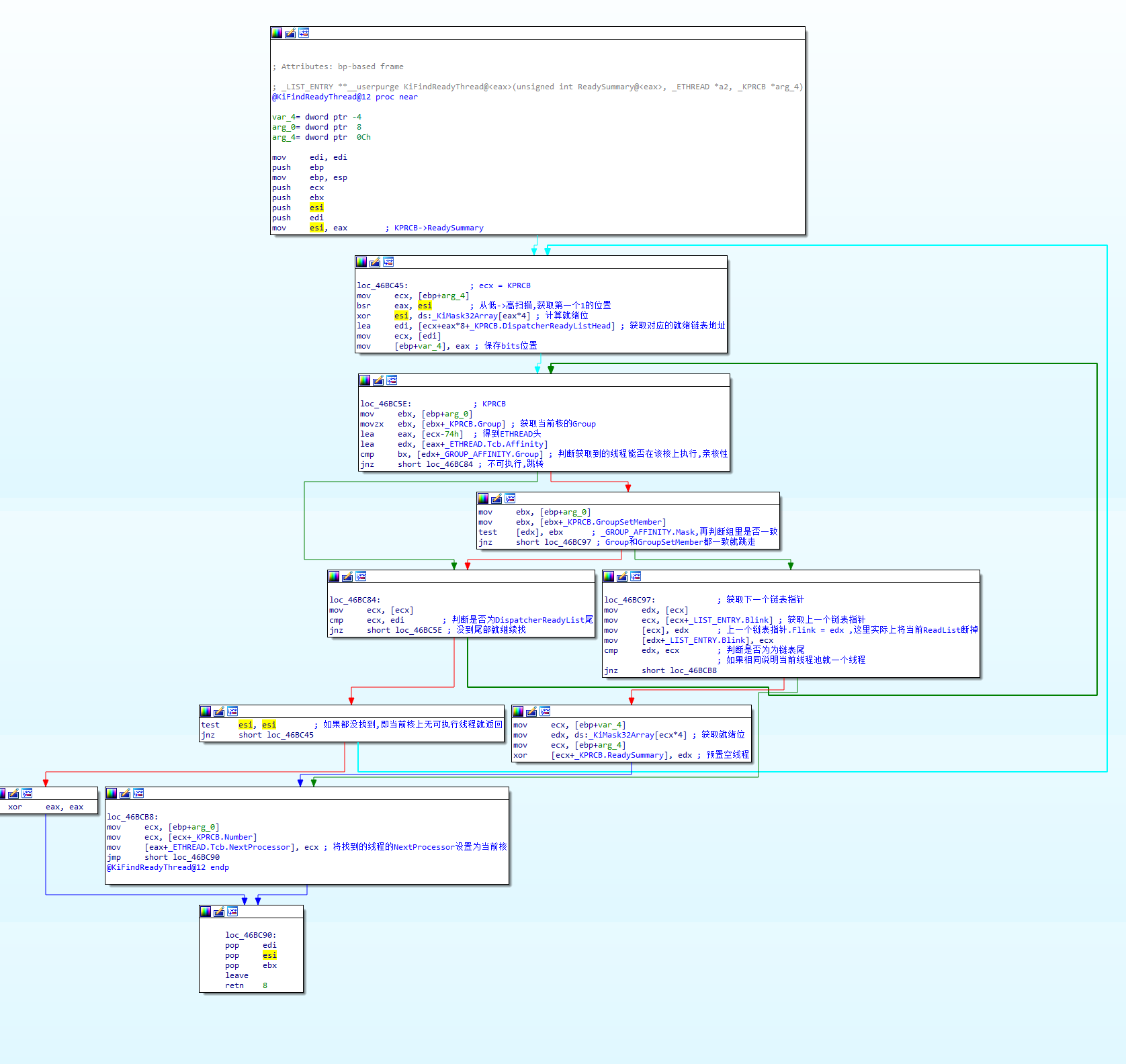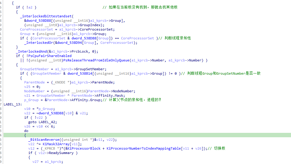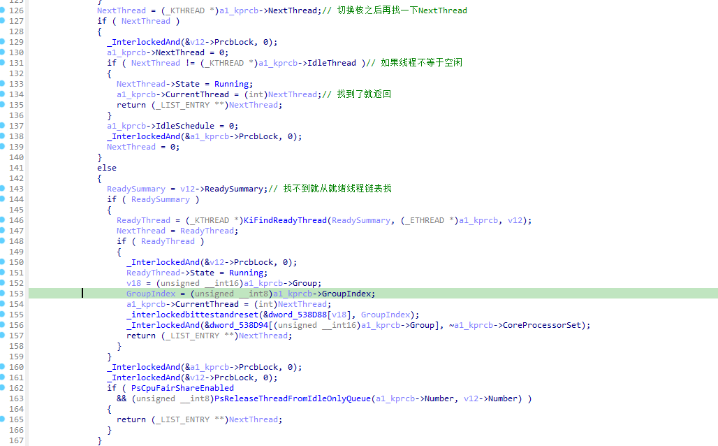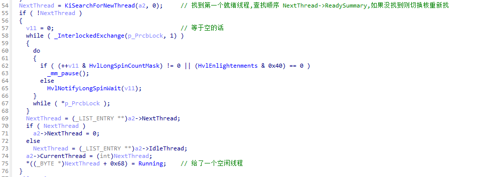 KiSearchForNewThread函数主要是对KiSwapThread调用时出入的KPRCB参数进行查找就绪函数,如果当前核找不到则切换到其他核找。