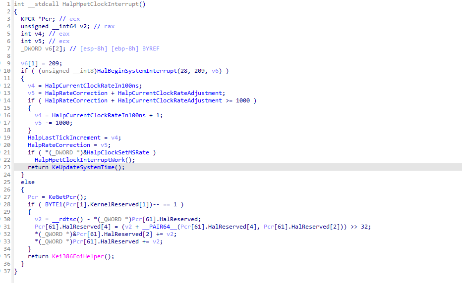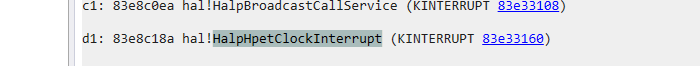| hal!HalpHpetClockInterrupt nt!KeUpdateSystemTime nt!KeUpdateRunTime hal!HalRequestSoftwareInterrupt hal!KfLowerIrql hal!HalpCheckForSoftwareInterrupt hal!HalpDispatchSoftwareInterrupt nt!KiDispatchInterrupt SwapContext