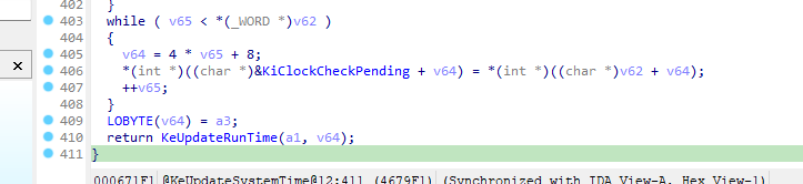 简单分析后实际上有用的也就KeUpdateSystemTime函数,进入查看。