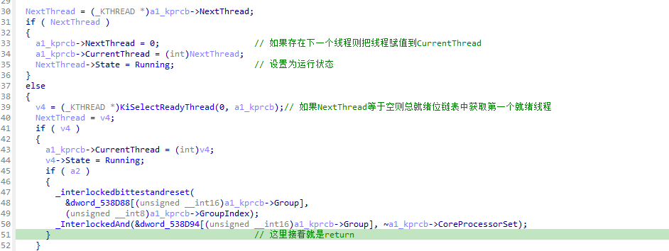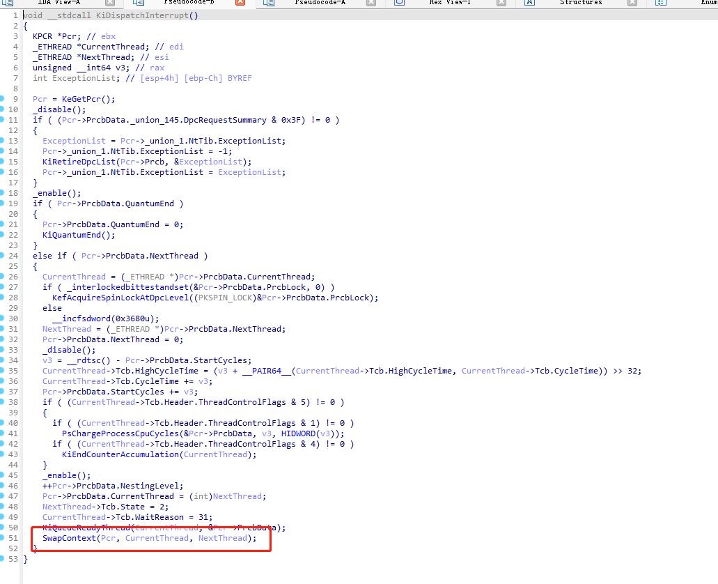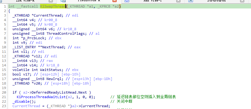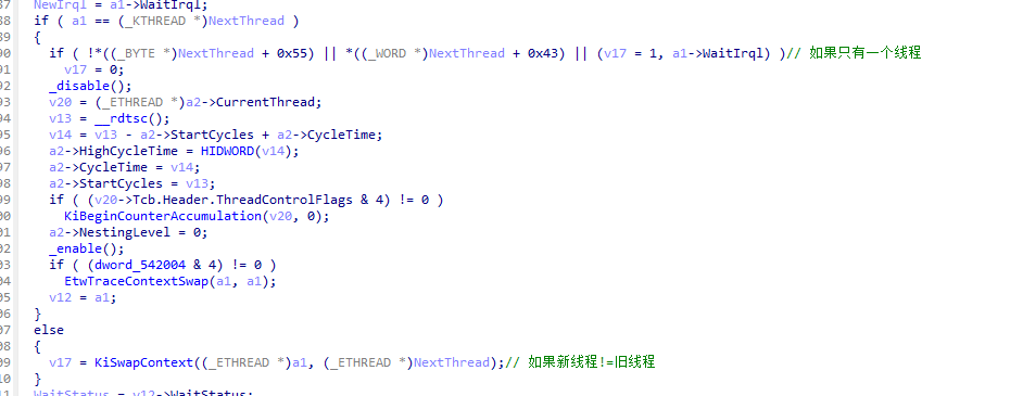 KiSwapThread只是做了查询就绪函数,实际上线程交换是在KiSwapContext中。