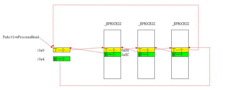 ProcessListEntry:系统内所有进程的链表。win7及以上此处为空,已弃用。