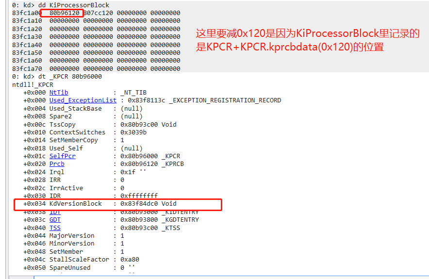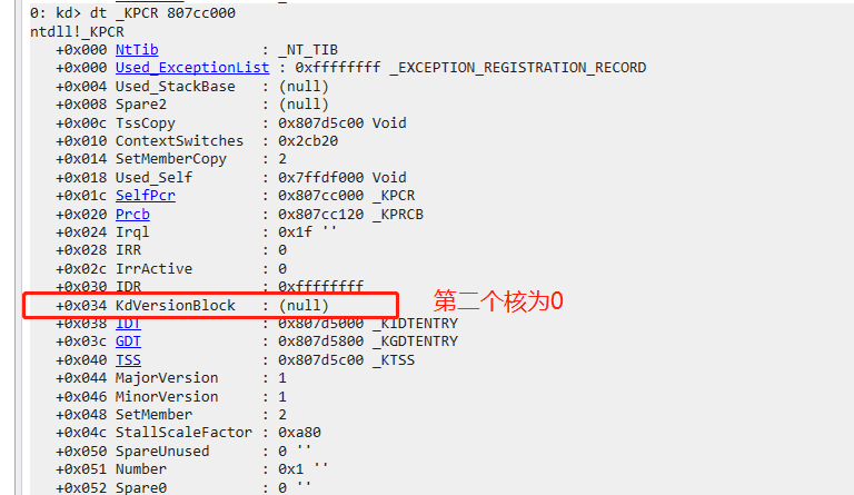 这个结构中KdVersionBlock有大用处!!!!这个字段对应的结构为_DBGKD_GET_VERSION64