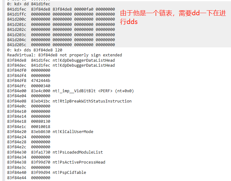 可以看到里边有很多东西,比如句柄表PspCidTable,对于他的这个结构在WRK有给出部分(由于系统一直在更新,所以内容也一直在添加)。_KDDEBUGGER_DATA64