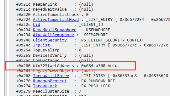 Win32StartAddress:GUI线程函数起始地址。当一个线程存在调用了UI相关的函数(win32u),则这个位置为真实的线程起始地址,否则与StartAddress相同。
