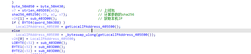 所有操作继续完毕后发送带有本机IP+sha256(运行参数)的上线包。