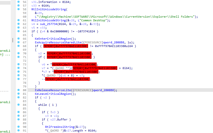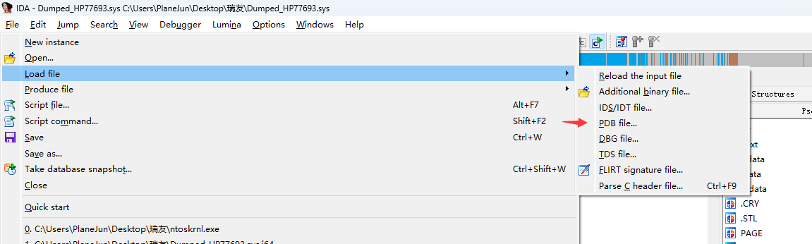 首先,我们把驱动dump下来后,因为缺少ntoskenl.exe的内存,所以函数调用会变红。所以我们首先是要加载这个内存。
