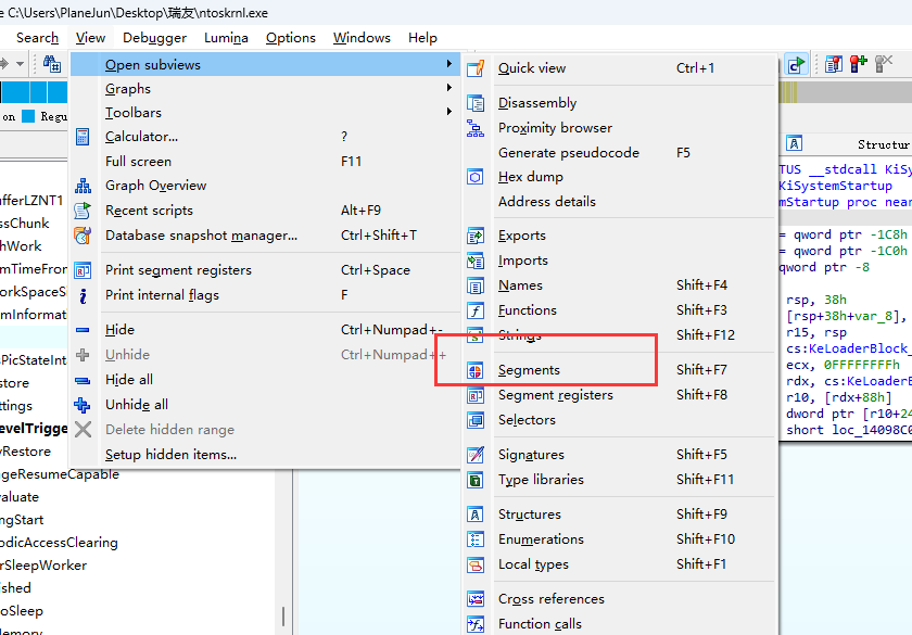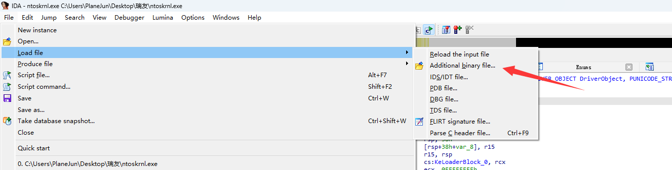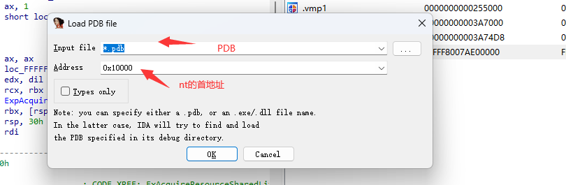 这种是要修复导入表的,大多数解决办法就是给dump文件修复导入表,但是这种方式有点弊端。比如说面对的是一段shellcode代码的话就比较繁琐,所以并不适用。最佳解决办法就是把ntoskrnl.exe模块原封不动加载到ida。