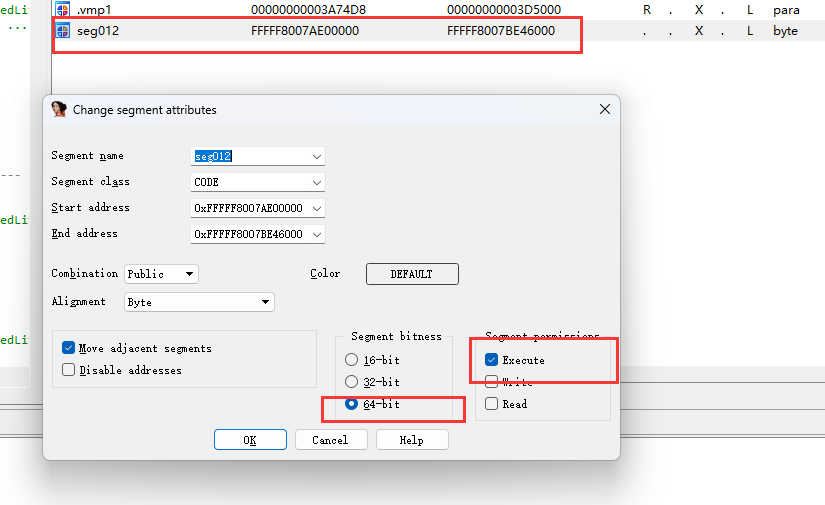 一定要注意这里,第一个是0,第二个是模块开始地址,然后点击ok。然后因为它是默认32位加载,我们需要到段区修改。