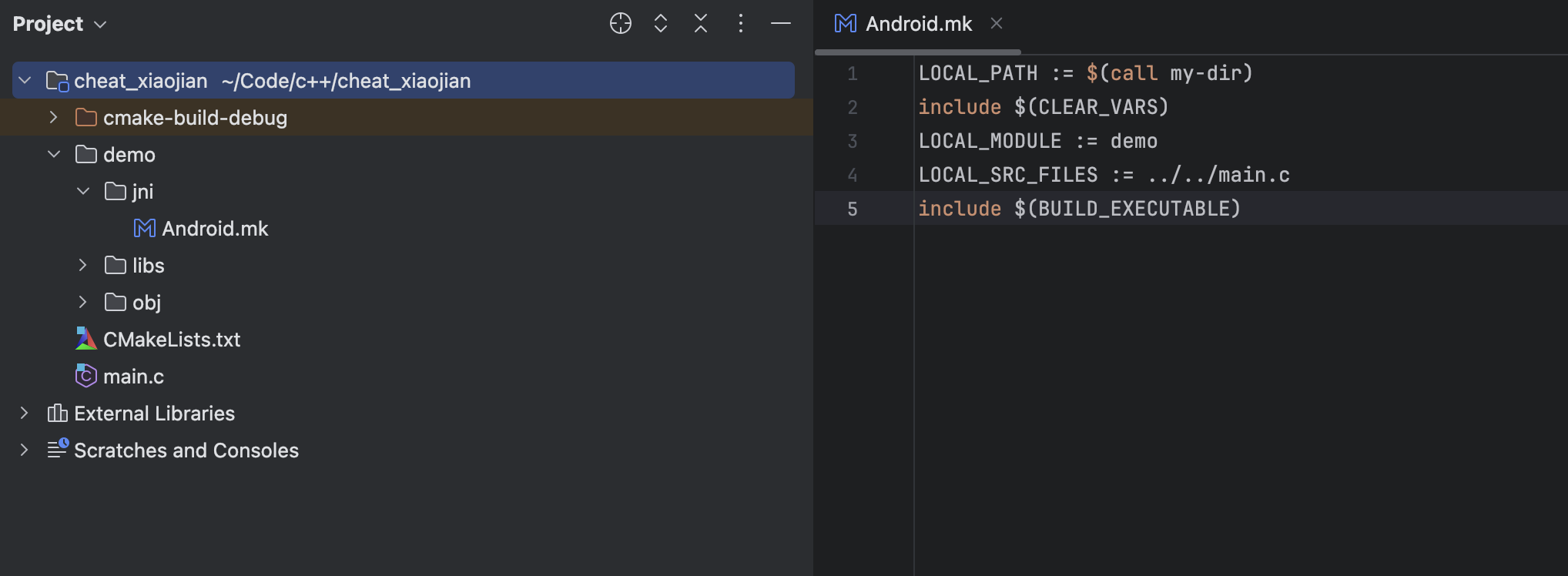 CLion+NDK环境,具体搭建见官方链接:https://developer.android.google.cn/ndk/guides/ndk-build?hl=zh-cn