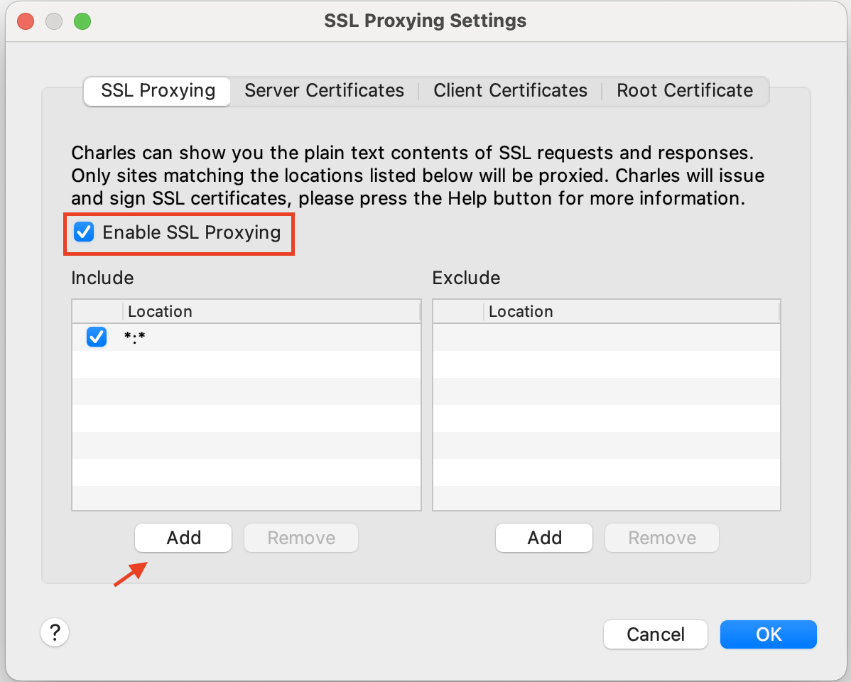 点击Add后host和port全部填*,代表对所有的https请求捕获,这个后续可以自己优化,比如只对指定host的https进行抓包。