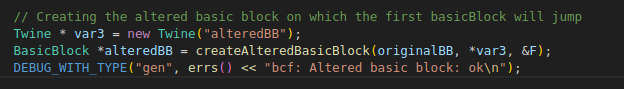 以originalBB为模板调用createAlteredBasicBlock创建了一个alteredBB,函数原理这里我不做解释,具体可以看Q神文章,这里先看他是怎么处理这个新BB。现在得到的代码块如下: